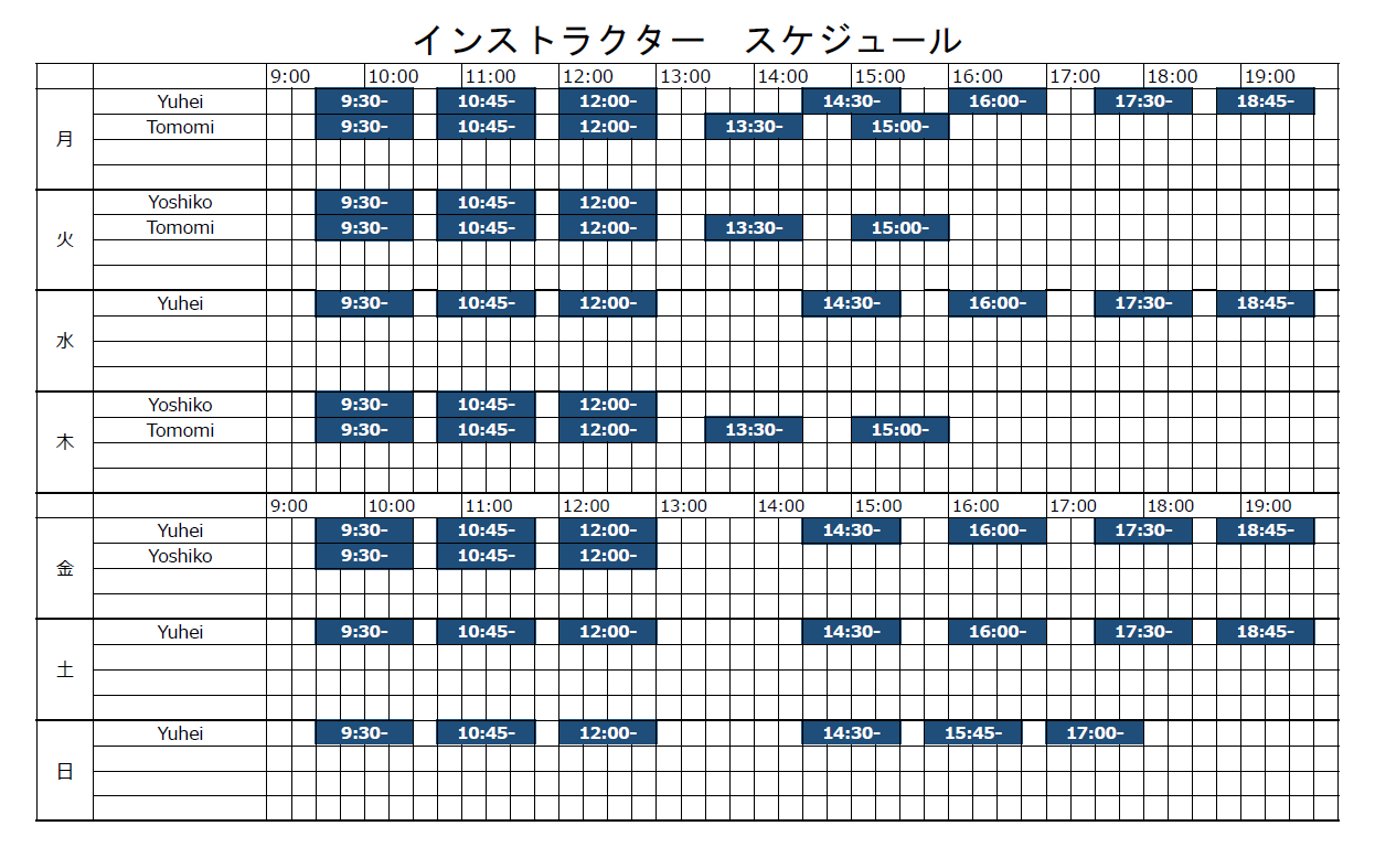 【インストラクター 今月の休み】