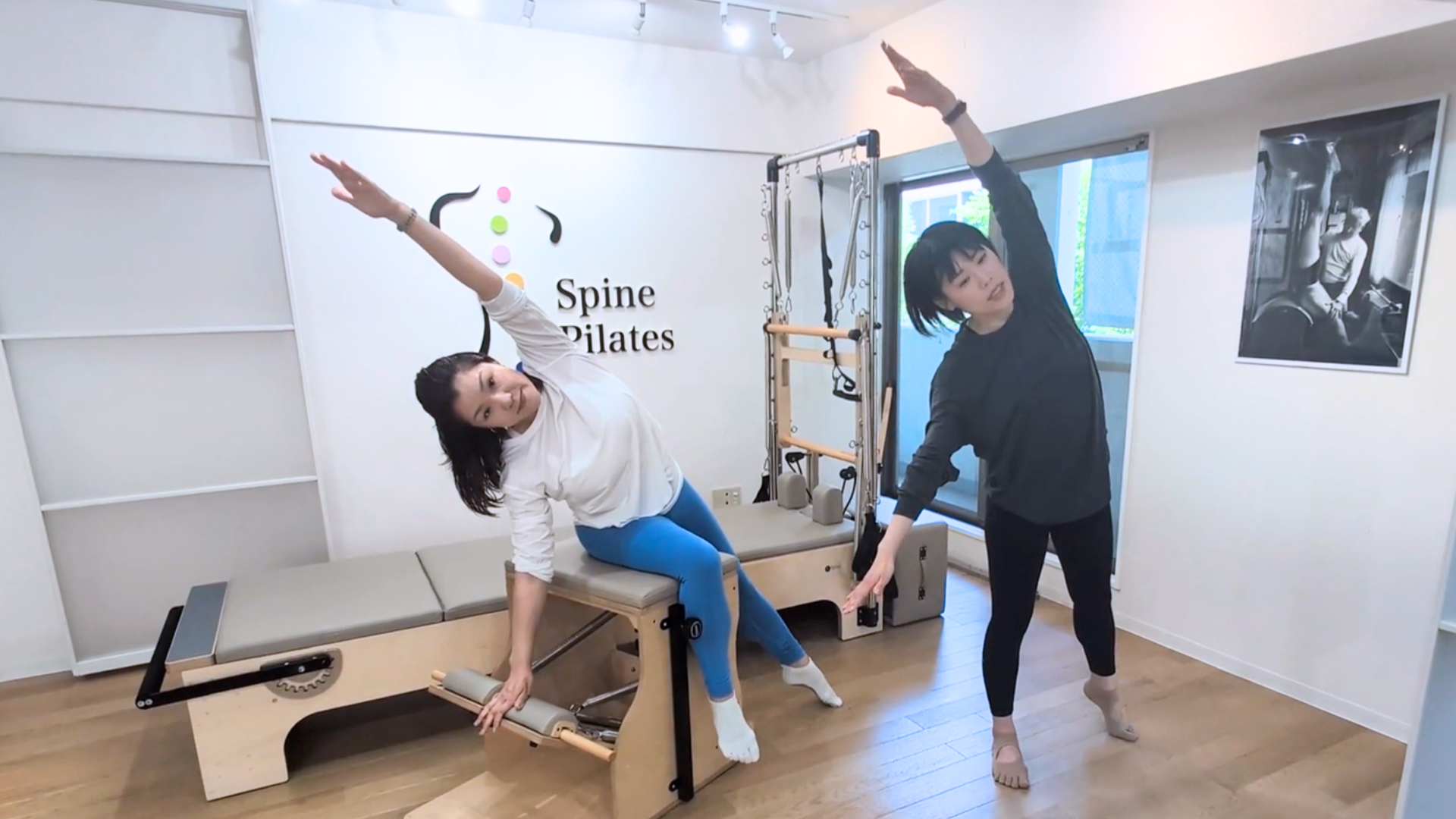 ピラティスでは、背骨を中心とした各関節への運動を促します。動作を再学習し、偏りを減らしていくことで、最終的には姿勢の改善に繋がります。